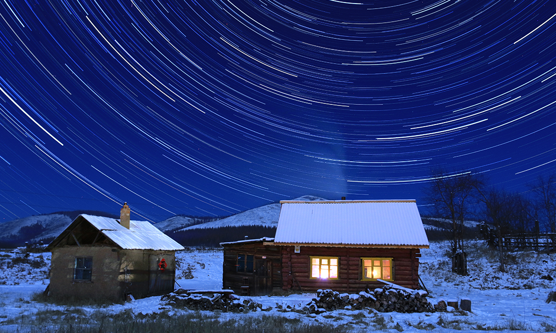 Star trails are captured at a border village in the northern part of Ergun city, North China’s Inner Mongolia Autonomous Region. Photo: VCG figcaption >