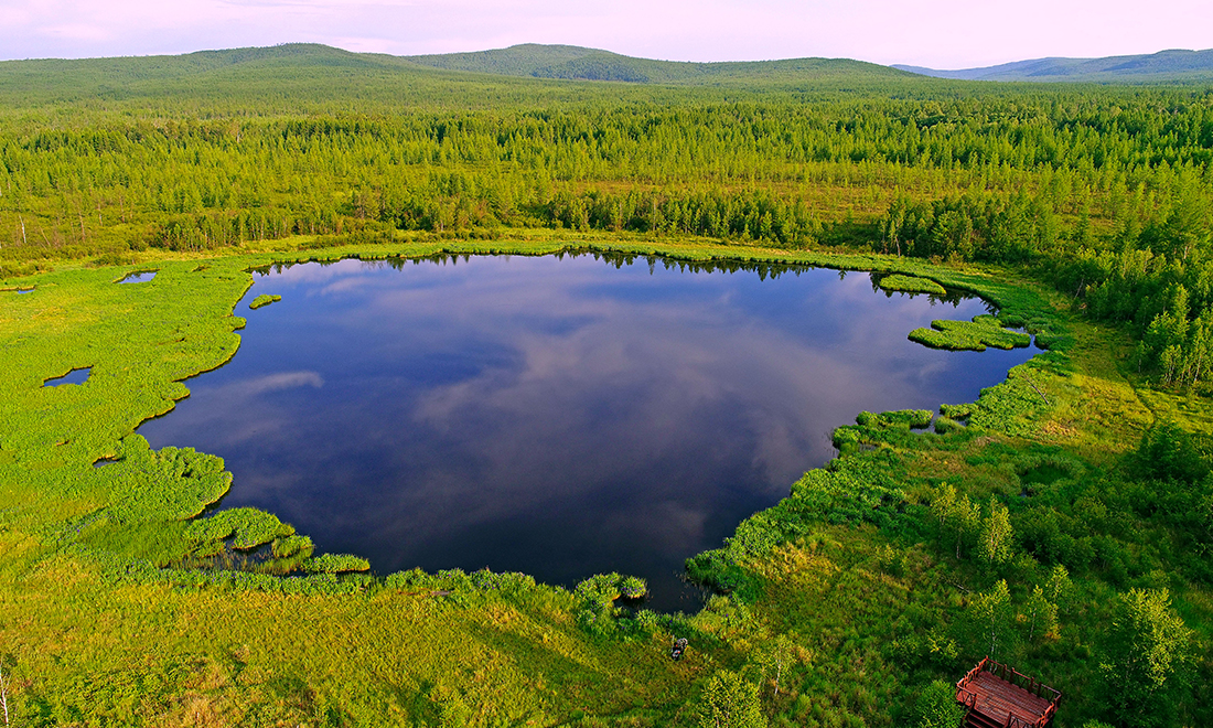 An aerial photo shows the beautiful scenery at the Malan Lake in the Greater Khingan Range, Hulun Buir, on July 1. Photo: VCG figcaption >