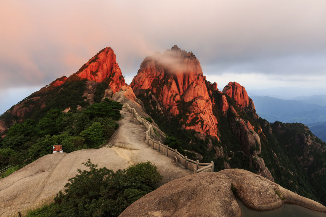 The sun sets on Aoyu Peak, Huangshan Mountain in East China’s Anhui Province on August 23, 2017. Photo: VCG figcaption >