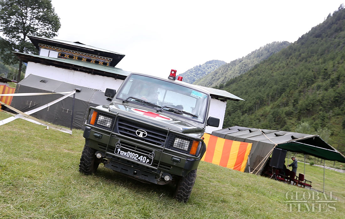 The Indian and Bhutanese armies established a joint drill base in Haa district, which is less than 40 kilometers from Dong Lang (Doklam) area. Photo: Cui Meng/GT