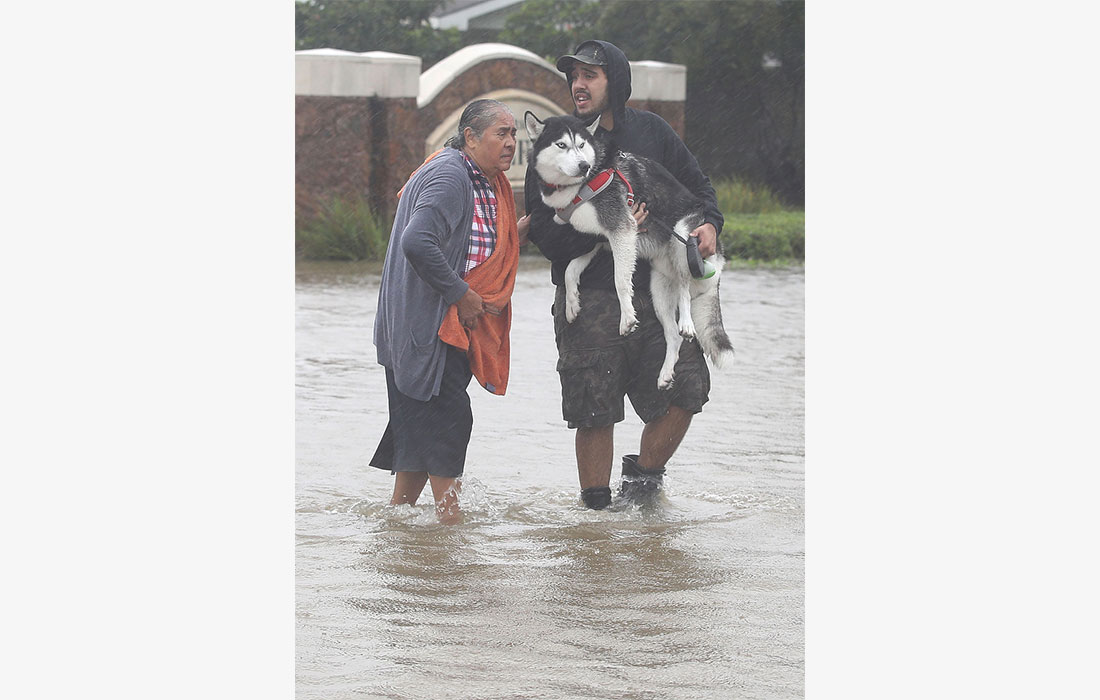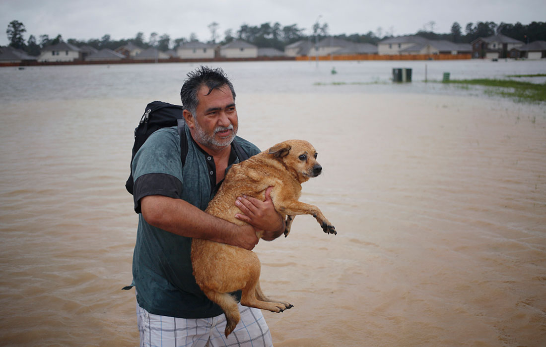 Pet owners refuse to leave their beloved animal companions behind in the rising floodwater from Hurricane Harvey, which made landfall north of Corpus Christi in Texas, US on August 25, 2017. Photos: VCG