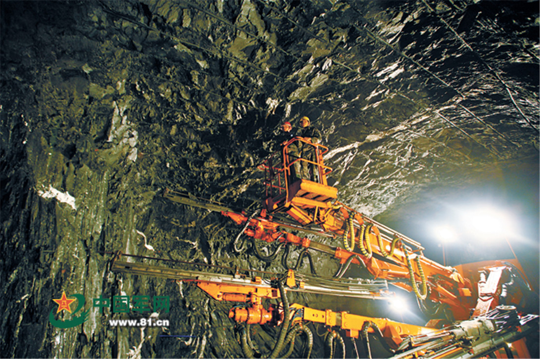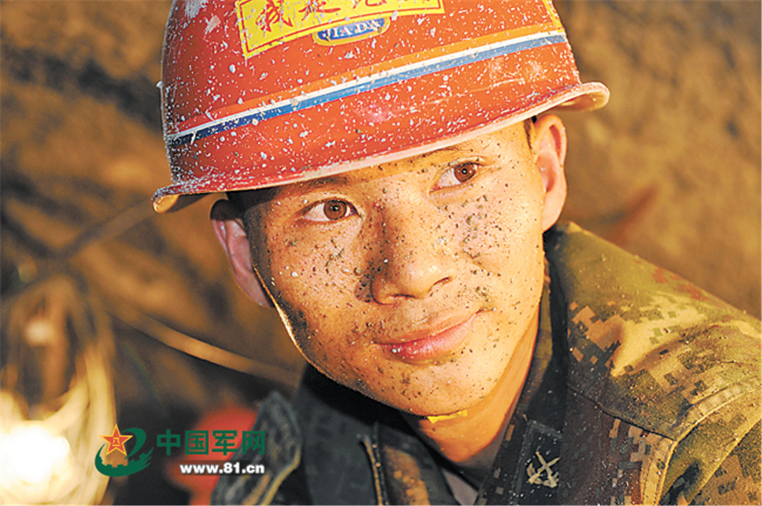 A Second Artillery Corps engineering soldier works underground. figcaption >