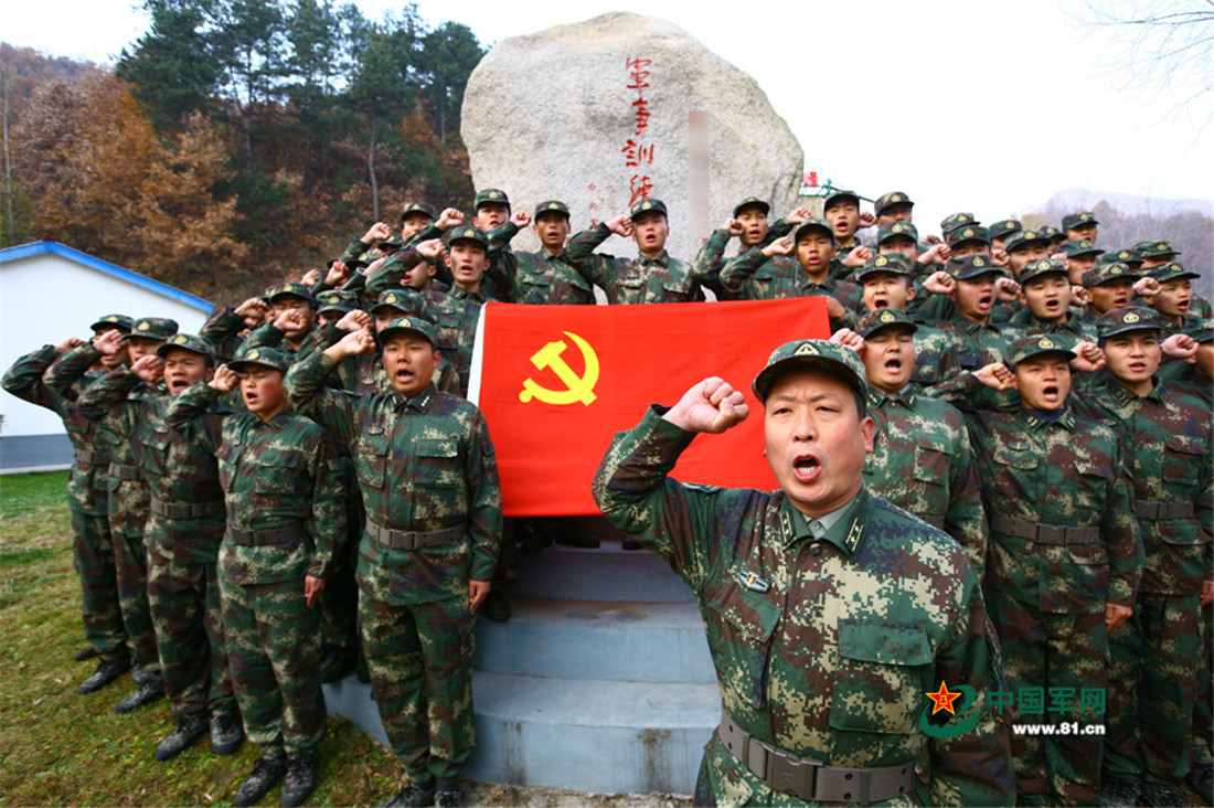Soldiers take an oath in front of the flag of the Communist Party of China. figcaption >