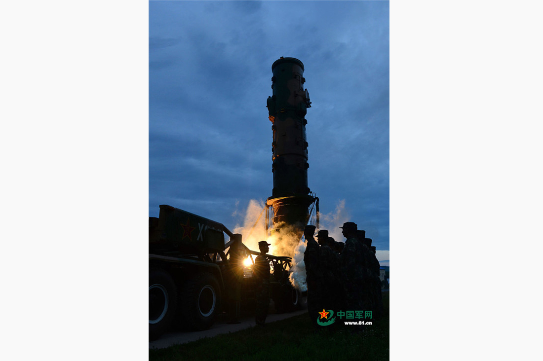A brigade of the Second Artillery Corps launches a missile at dusk. figcaption >