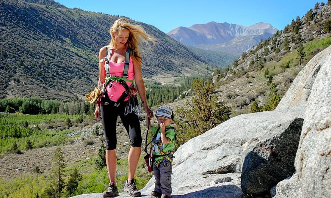 Bodhi hikes in a mountainous area with his mom, Shannon. Before turning 2 years old, the boy had traveled more than 483 kilometers with his parents. Photo: pix Media/VCG figcaption >