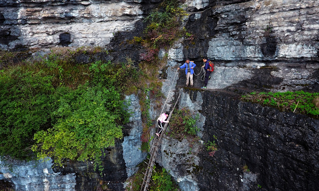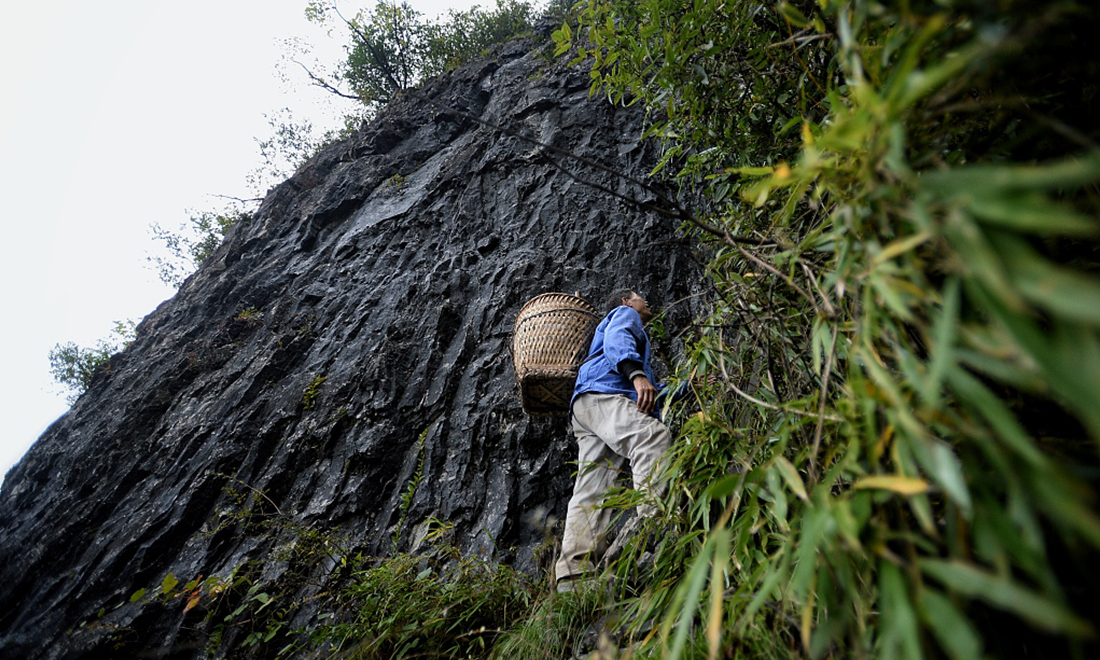 These villagers will go to great heights to pick square bamboo. Residents of Nanchuan, Chongqing make a living by scaling the cliffs of nearby Jinfo Mountain – a 1,700 meter trip – to reach the succulent bamboo shoots that grow on top, which they sell to vendors.