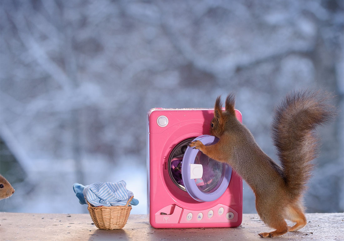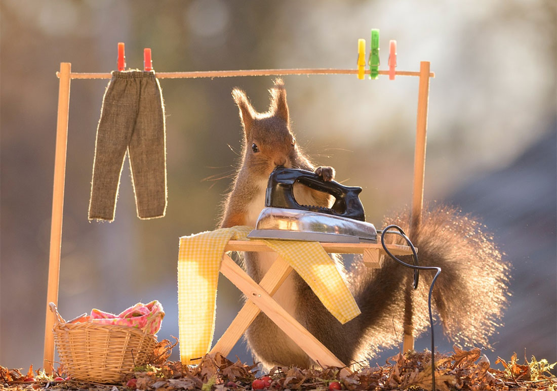 Swedish photographer Geert Weggen's latest squirrel series will have you hoping these cute little guys wash human-sized clothes, too.