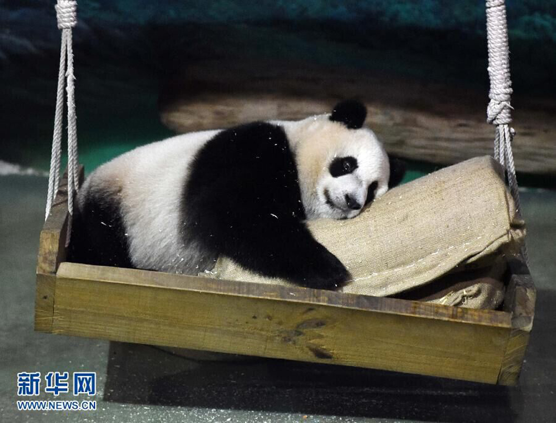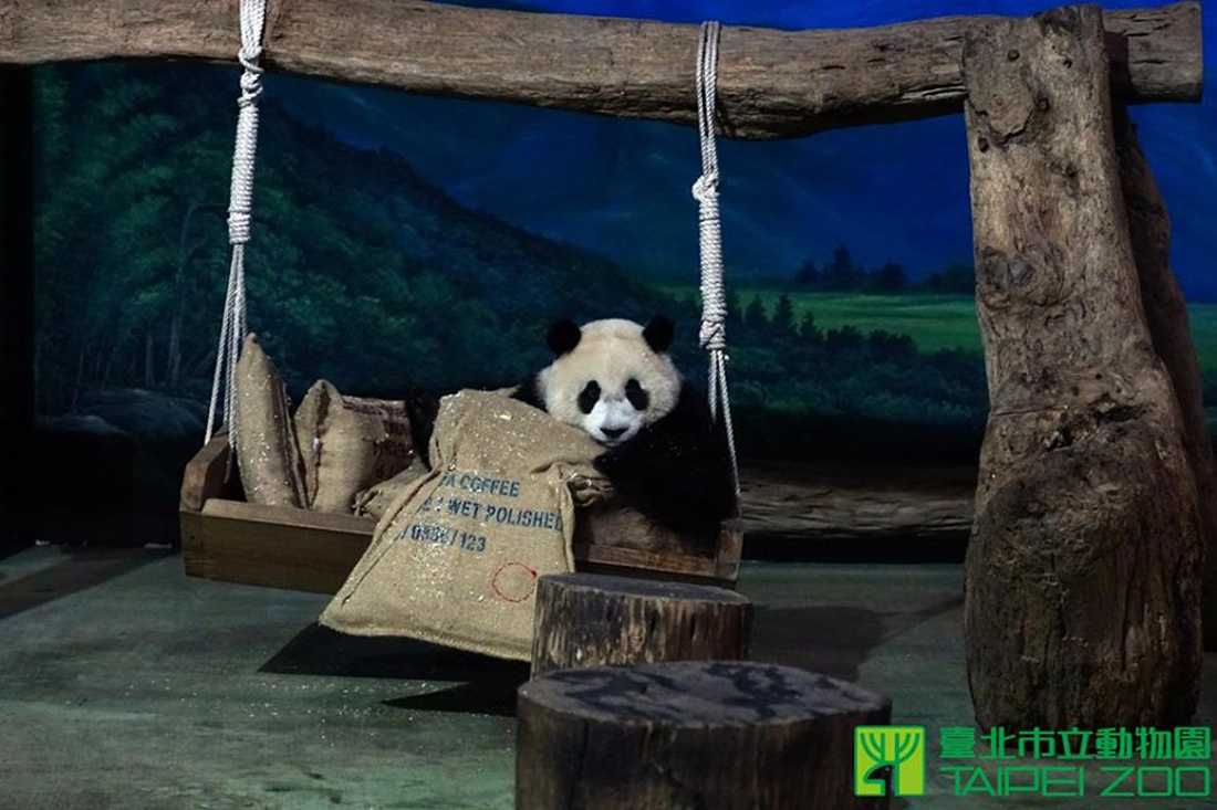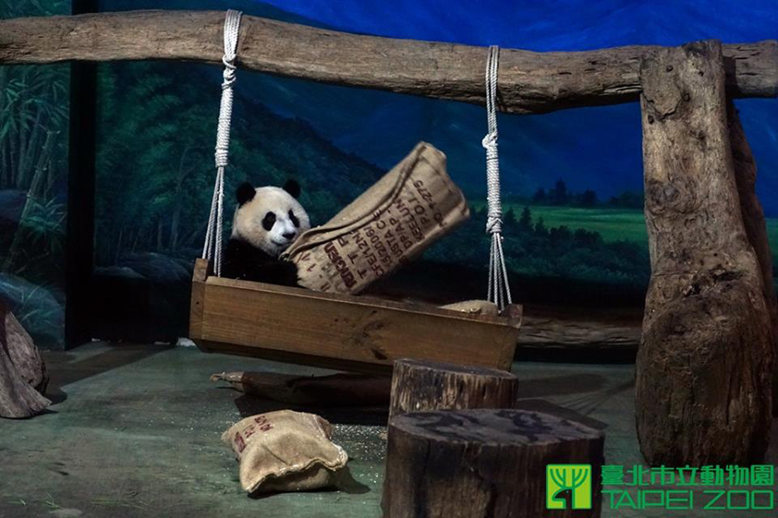 Yuanzai plays with a birthday gift - a toy made by local residents – at the Taipei Zoo, Taiwan, on July 4. Photo: Xinhua figcaption >