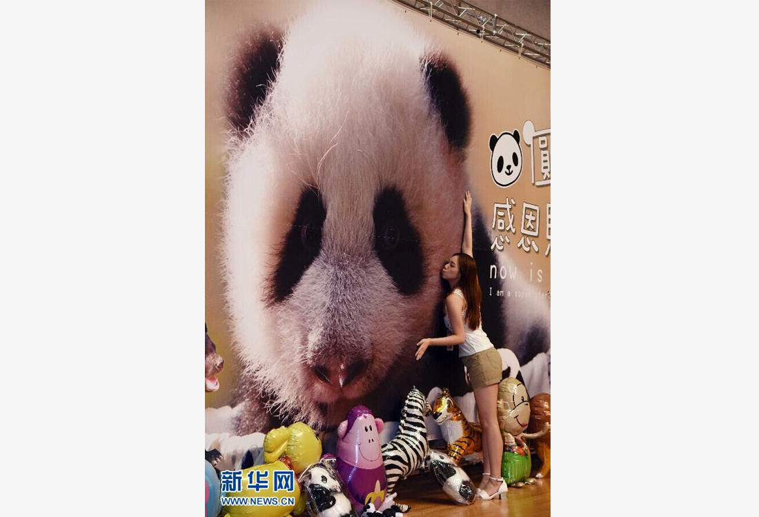 A local resident kisses a photo of Yuanzai at its birthday party in Taipei, Taiwan, on July 4. Photo: Xinhua figcaption >