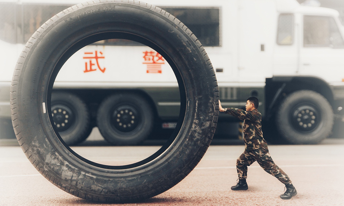 Soldiers from the Chongqing Armed Forces General Corps took this series of creative photos before ending their five-year tour of duty. The images play with perspective; soldiers appear tiny next to objects that they feel best represent their time in the military.