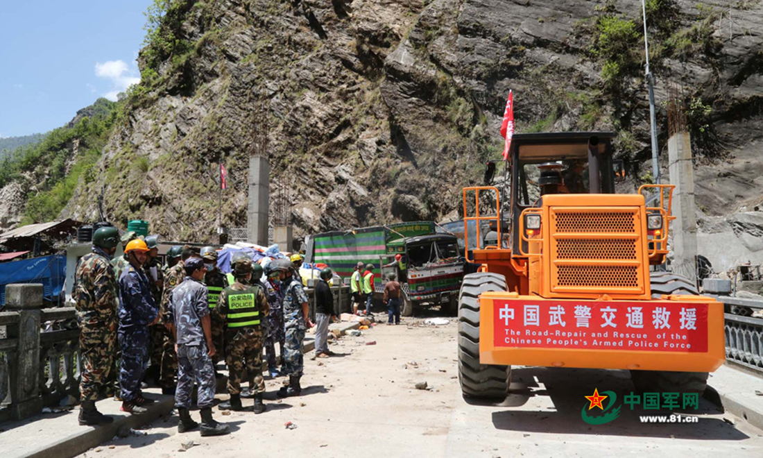 The Armed Police transportation rescue team work on road repairs in Nepal on May 3. figcaption >