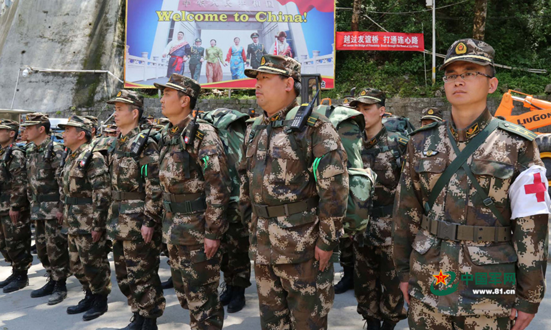The Armed Police transportation rescue team holds a ceremony in Nyalam and Gyirong counties,Tibet Autonomous Region before departing for earthquake relief work in Nepal on May 3. Armed police were deployed after a devastating 8.1-magnitude earthquake hit Nepal on April 25, which also affected areas in Tibet. figcaption >