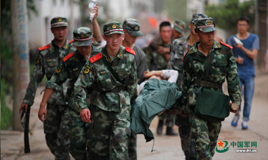 Armed Police forces participate in earthquake relief work after the Ludian earthquake in Yunnan Province in 2014. figcaption >