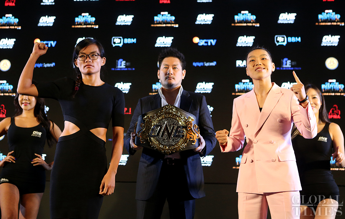 Chinese MMA fighter Xiong Jingnan is to take on undefeated Singaporean Tiffany Teo for the ONE Championship’s first women's strawweight title at the Jakarta Convention Center, Indonesia on January 20, 2018. Photos: Cui Meng/ GT