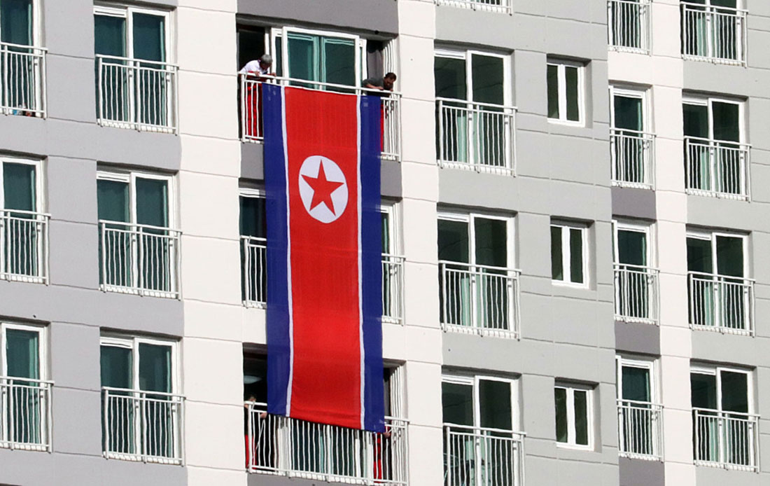 The national flag of North Korea hangs in the Olympic village. Photo: VCG figcaption >