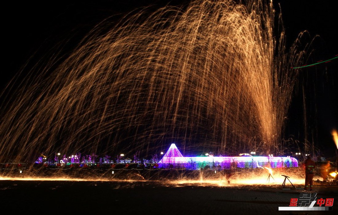 A crowd watches in the distance during a “beat the iron flower” performance in Yongjing county, Northwest China’s Gansu Province on February 8. Photo: Xinhua figcaption >