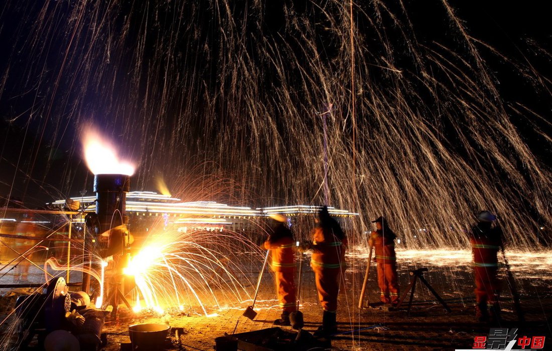 Yongjing county and the Wang family have since revived the tradition by holding large “beat the iron flower” performances during the holidays. Photo: Xinhua figcaption >