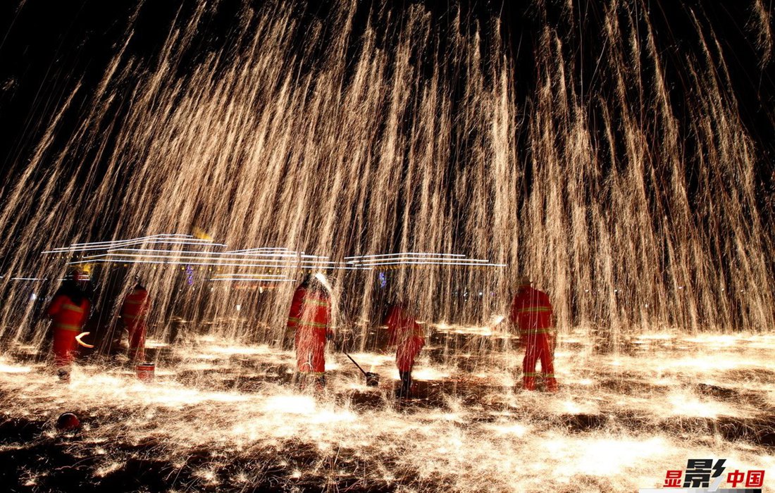 Let the sparks fly! Performers create spectacular spark displays with splashes of molten iron fireworks in NW China’s Gansu Province. The ancient art of Datiehua, or “Beat the iron flowers,” is traditionally performed to celebrate the Spring Festival. (Photos: Xinhua)