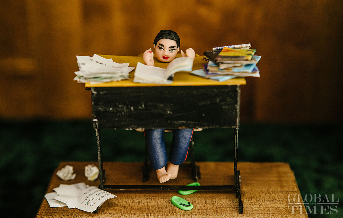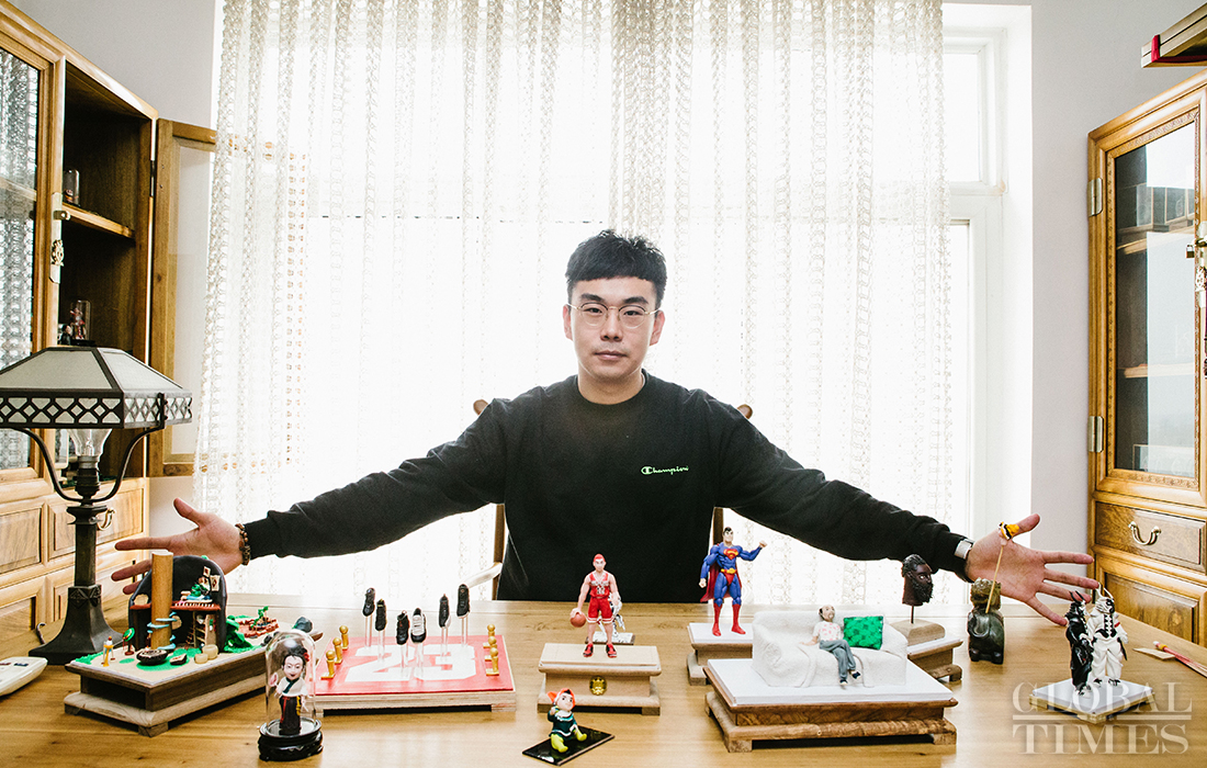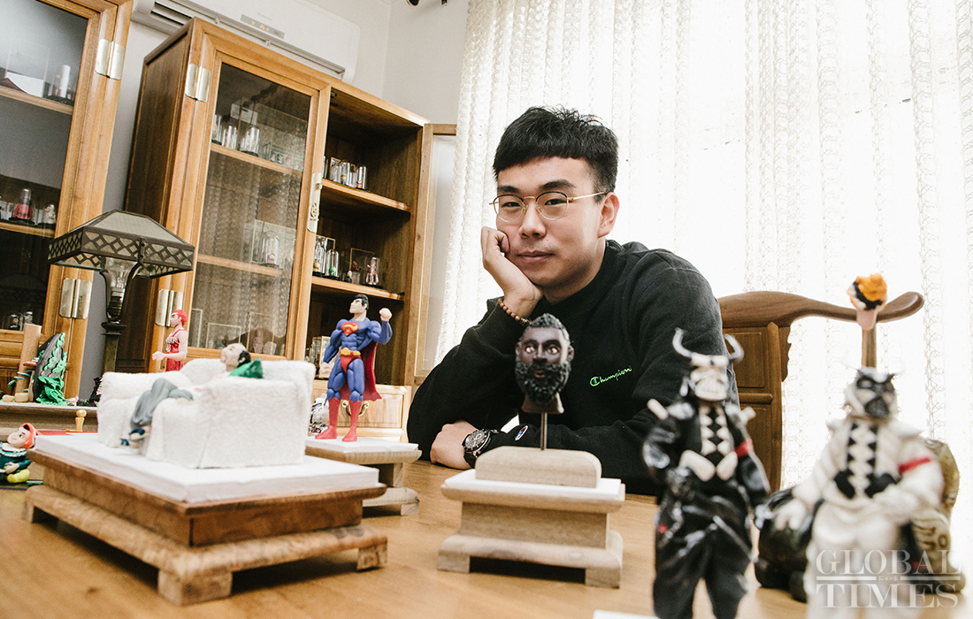 Lang Jiaziyu, 23, the third-generation inheritor of Mianren Lang (Lang style dough figurine) combines popular elements fancied by young people with the traditional creation of the dough figurine. (Photos: Li Hao/GT)