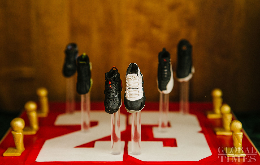 The picture shows dough figures of Jordan basketball shoes style produced by Lang Jiaziyu, the third-generation inheritor of Mianren Lang on March 7, 2018, in Beijing. (Photo: Li Hao/ GT)