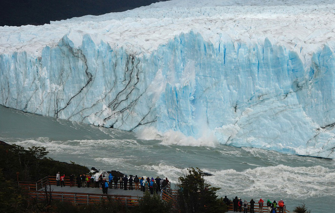 Lucky tourists are treated to a spectacular splash as a giant ice arch collapses at Argentina’s Perito Moreno Glacier. Giant sections of ice plunged into Lake Argentina at Los Glaciares National Park on Monday, the result of flowing water wearing down the ice formation over time. Such ruptures in the glacier’s ice occur every few years.Photos: VCG