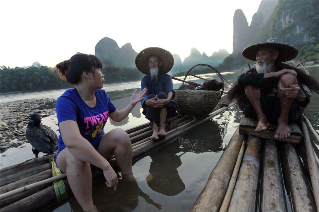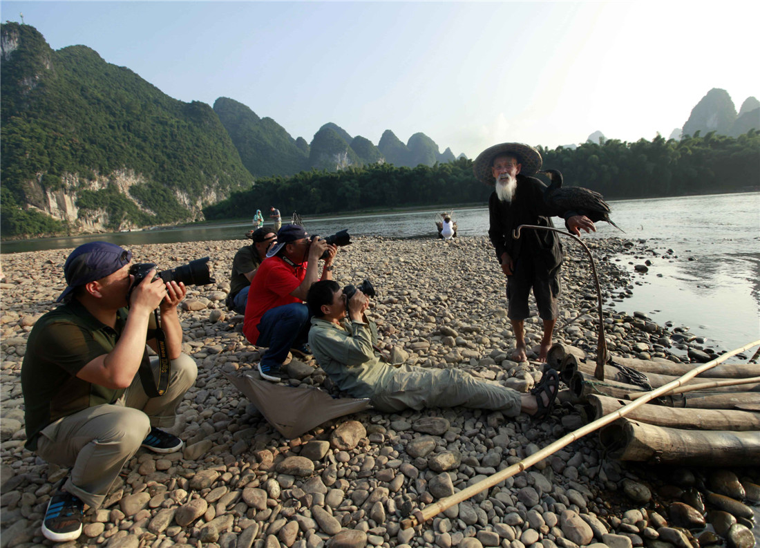 Huang Quande (right), 86, and his 76-year-old brother Huang Yuechuang, stand on their fishing boats on the Lijiang River Scenic Zone in Xinping, Guilin, Guangxi Zhuang Autonomous Region on July 14, 2015. Though fisherman by trade, in recent years the Huang brothers have been hauling in yuan from tourists. For the right price, the pair offer photographers visiting the UNESCO world heritage site a rare glimpse of China’s past; their bamboo hats, boats and white beards epitomize the idyllic image of fisherman as portrayed in traditional Chinese artwork. Yuechuang officially traded in his fishing nets in 2003 to pose for tourists and photographers full-time. Quande followed in 2008. Photo: CFP