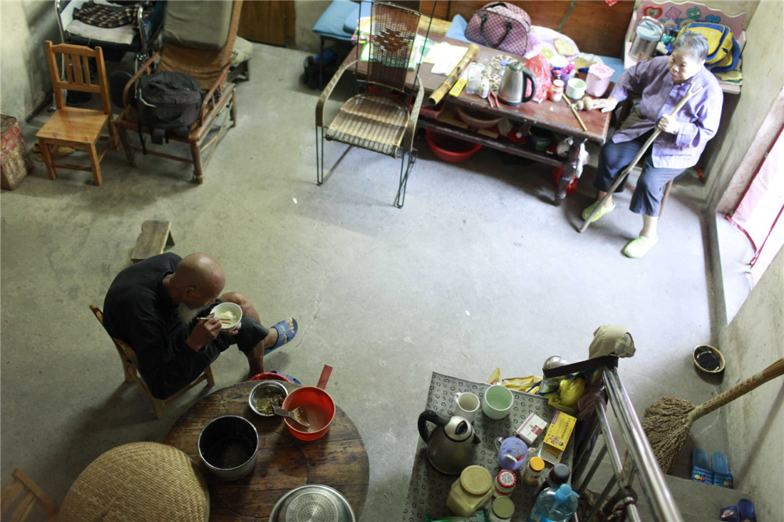 Huang Quande has lunch at home with his wife on July 14. Summer is peak tourist season on the Lijiang River. The Huang brothers are very busy these days, and sometimes have no time for lunch. Photo: CFP figcaption >