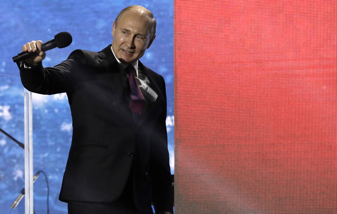 Supporters hold rally on Putin’s last official campaign day of the presidential election