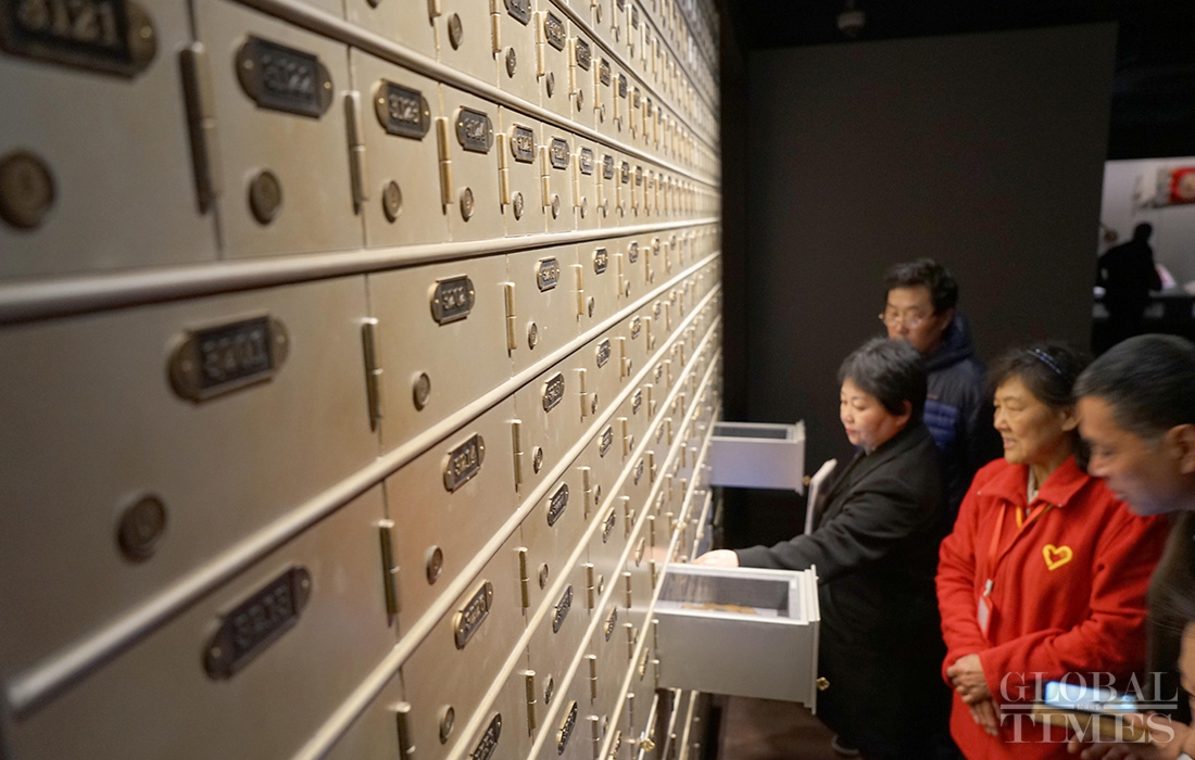 People view and interact with early bank safety boxes at the Shanghai History Museum on March 26, 2018. Photo: Yang Hui/GT figcaption >