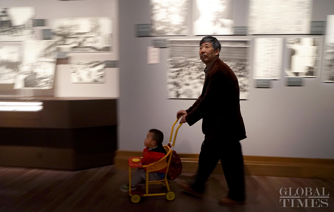 A grandfather visits the Shanghai History Museum with his grandson on March 26, 2018. Photo: Yang Hui/GT figcaption >