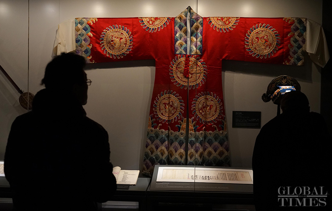 The picture shows a costume belonging to Zhou Xinfang, a Peking Opera master, on display at the Shanghai History Museum. Photo: Yang Hui/GT