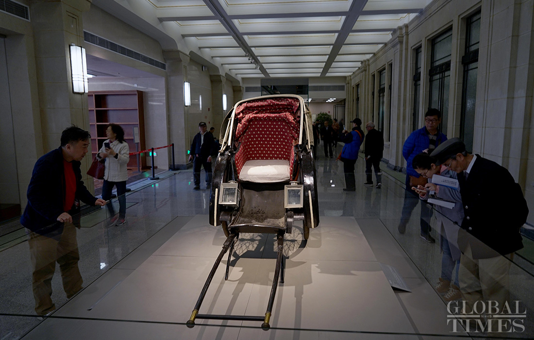 The earliest rickshaw (huangbaoche) in Shanghai is on display at the Shanghai History Museum on March 26, 2018. Photo: Yang Hui/GT figcaption >