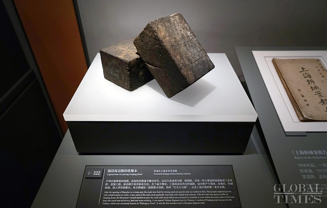 Lignumvitae for paving Nanjing Road is on display on March 26, 2018. Photo: Yang Hui/GT figcaption >