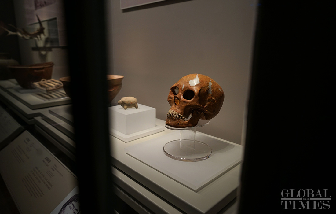 The skull of one of the Shanghai's earliest inhabitants is on display at the Shanghai History Museum on March 26, 2018. Photo: Yang Hui/GT figcaption >