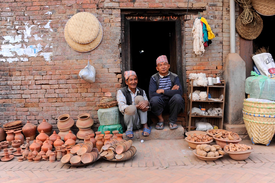 Nepalese vendors sell pottery in front of their house in Nepal on March 22, 2018. Photo: Zhang Jiaxiang figcaption >