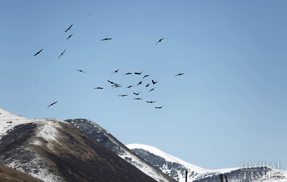 Flocks of birds circle above the snow-capped mountains that surround the Island. Photo: Yang Hui/GT figcaption >