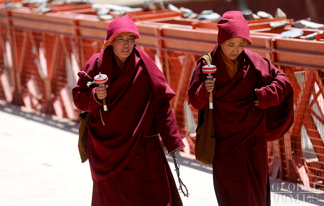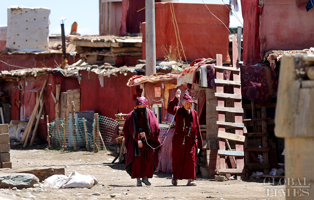 Over 20,000 nuns and monks live at the Yaqing Temple in Southwest China’s Sichuan Province. Yaqing is known as the world’s biggest home to Juemu, or Tibentan Buddhist nuns. Juemu live on a male-forbidden part of an island and build houses on the mountain slopes, where they practice their religion. The following photos show the daily life of the Tibetan Buddhist nuns.Photos: Yang Hui/GT