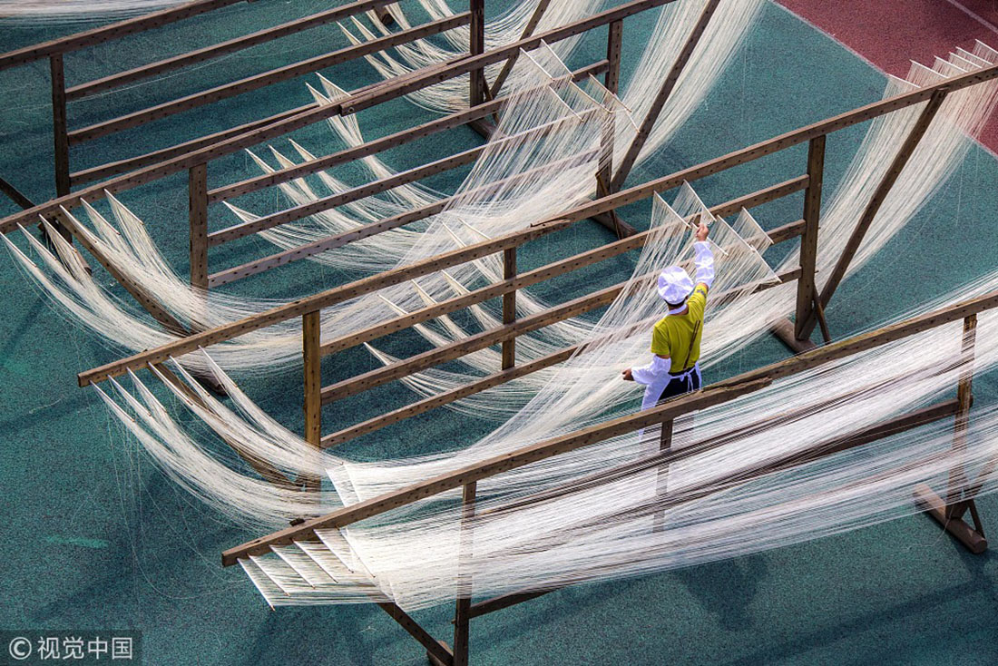 Fuzhou extra-thin noodles, which are renowned for being hair-thin, pliable and strong, is a traditional local specialty in East China's Fujian Province. Originating from the Southern Song dynasty (1127-1279), the fine noodle-making craft is handed down in Gushan, Fuzhou. However, the number of craftsmen continues to decline due to the difficulty of creating the noodles, for even the finest noodle making machine can't produce this kind of noodle like an experienced hand can.