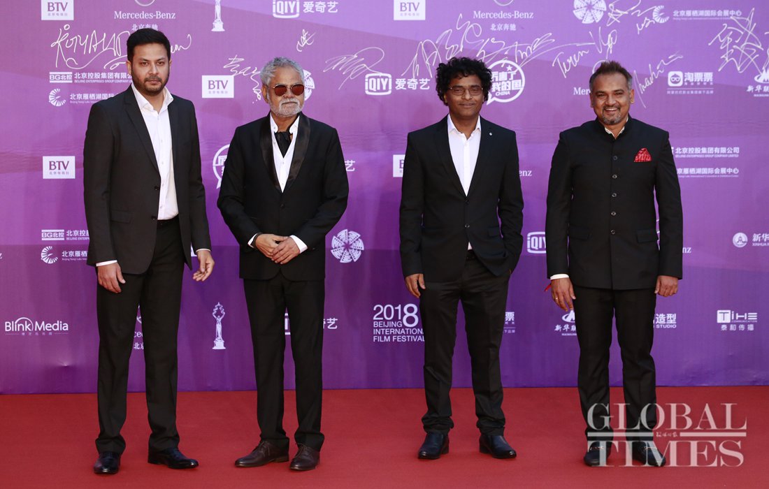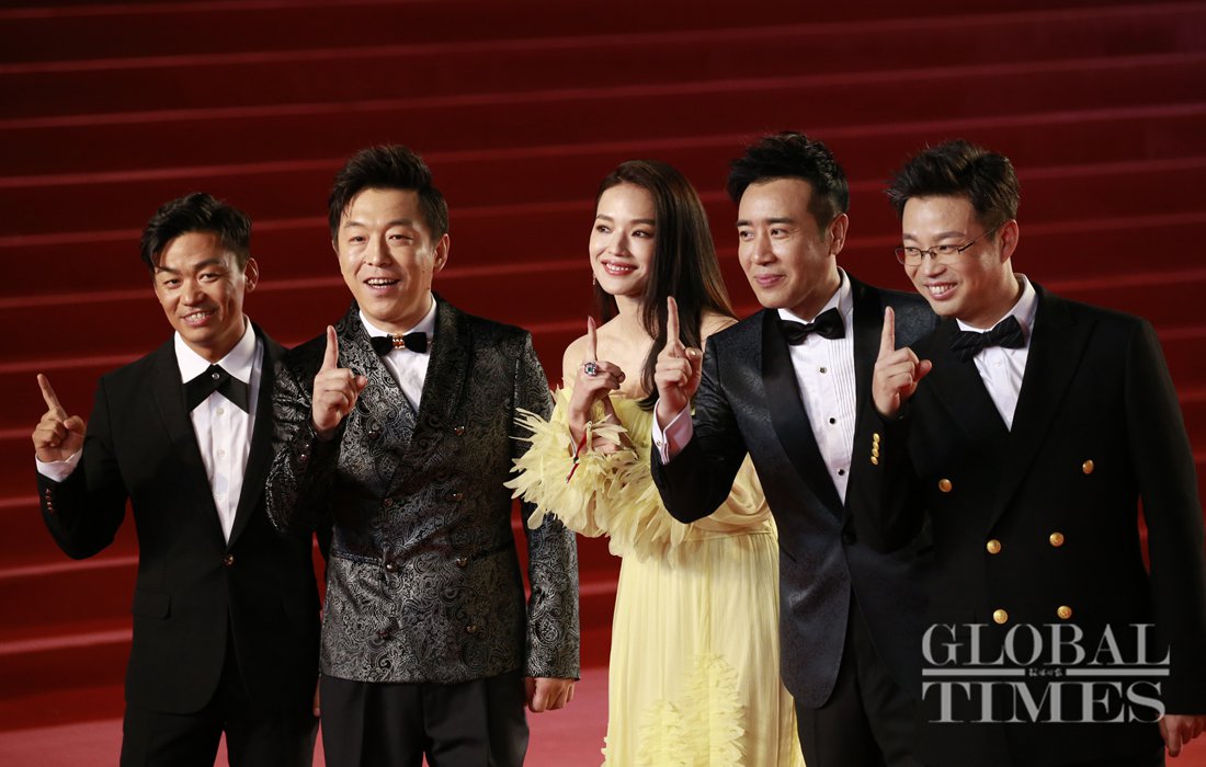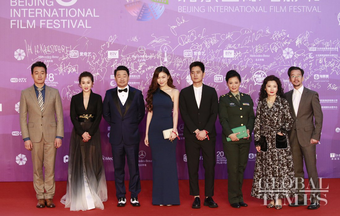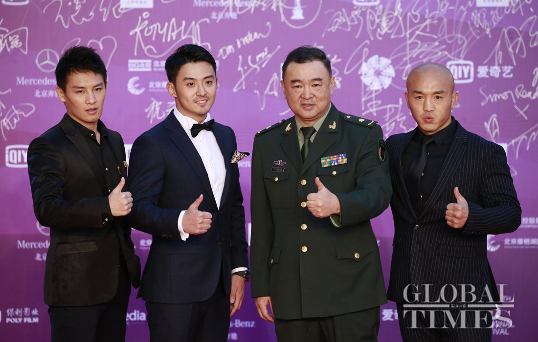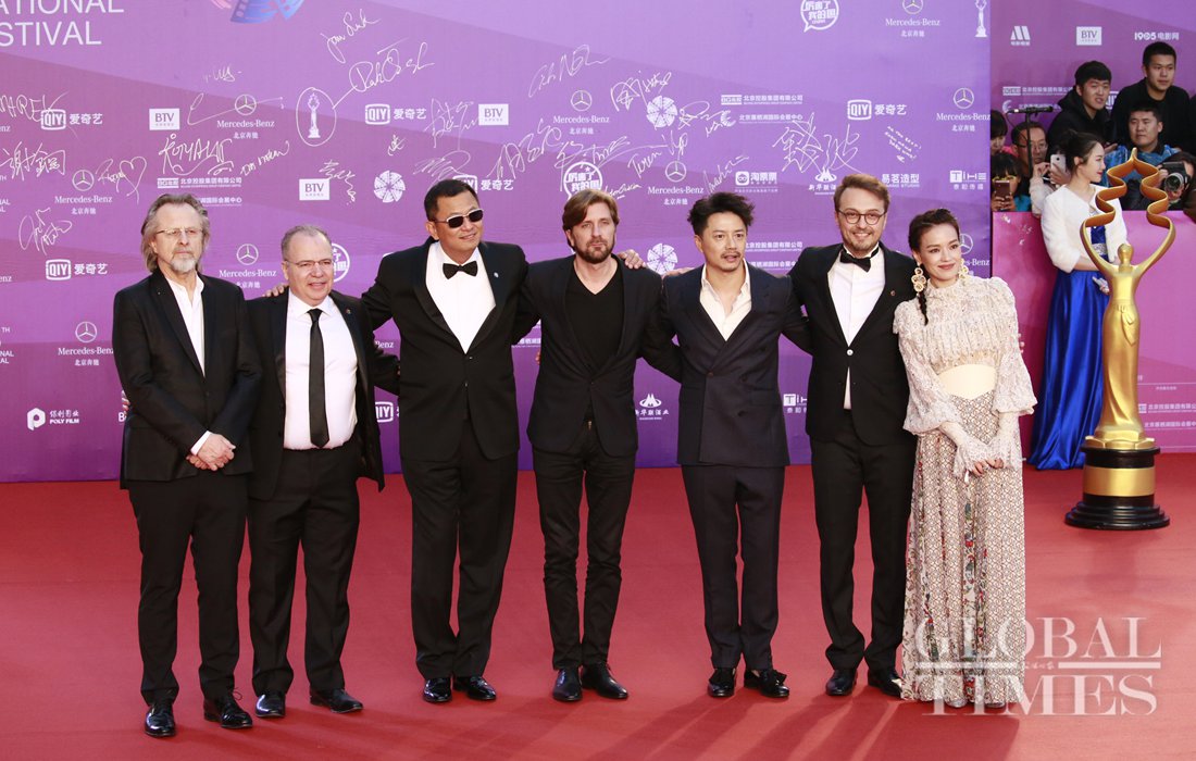 Judges of Tiantan Awards of 8th Beijing International Film Festival pose on the red carpet following the festival’s closing ceremony. (Photo: Li Hao/GT)