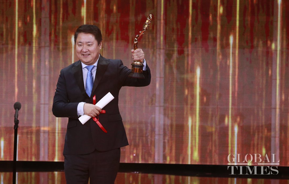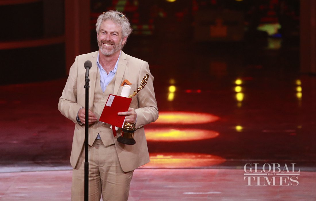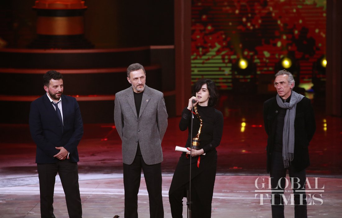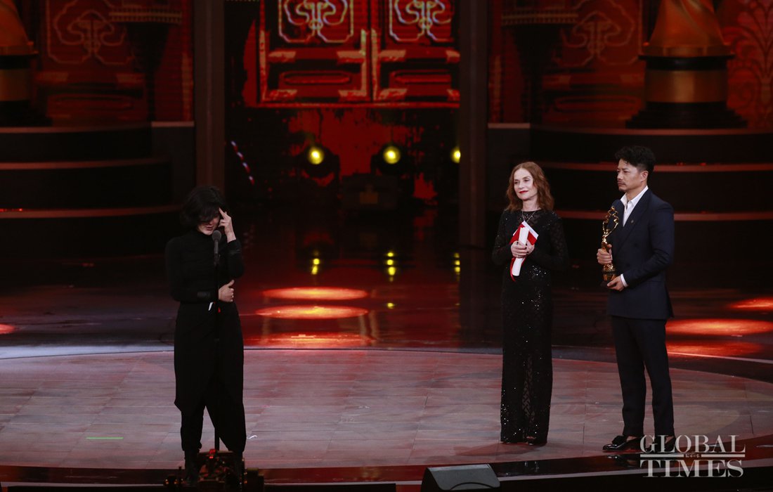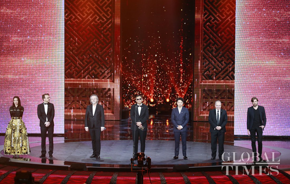 The Tiantan Awards jury line up on stage during the awards ceremony for the 8th Beijing International Film Festival. (Photo: Li Hao/GT)