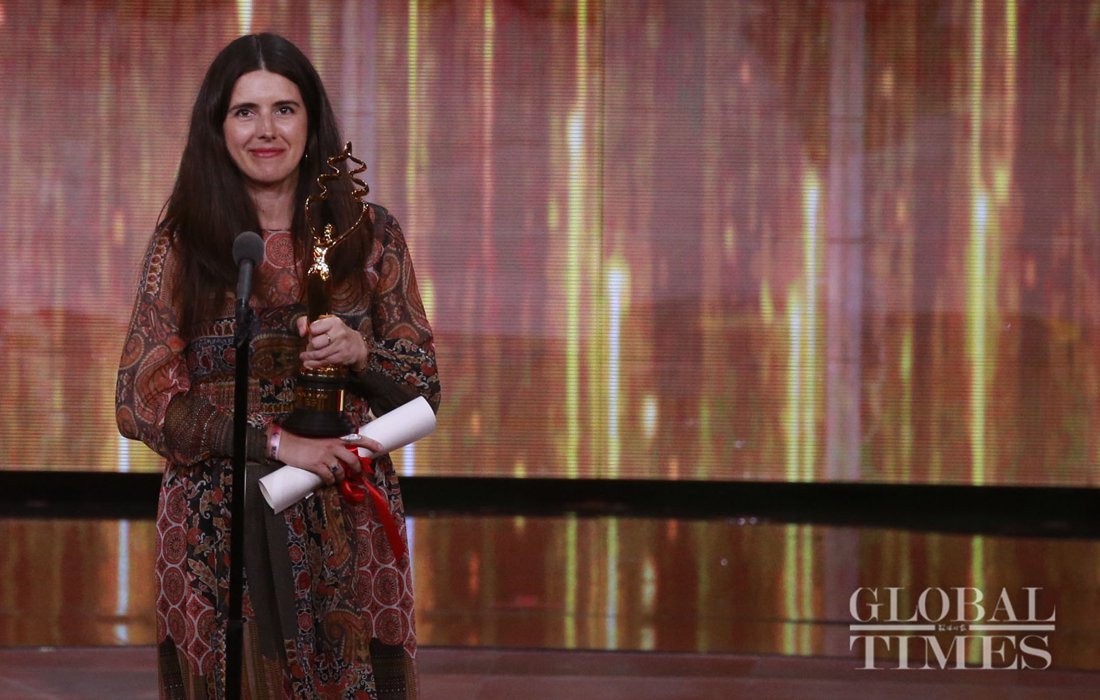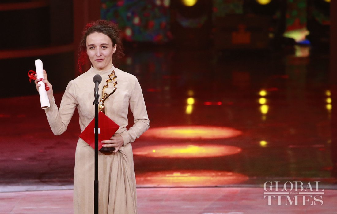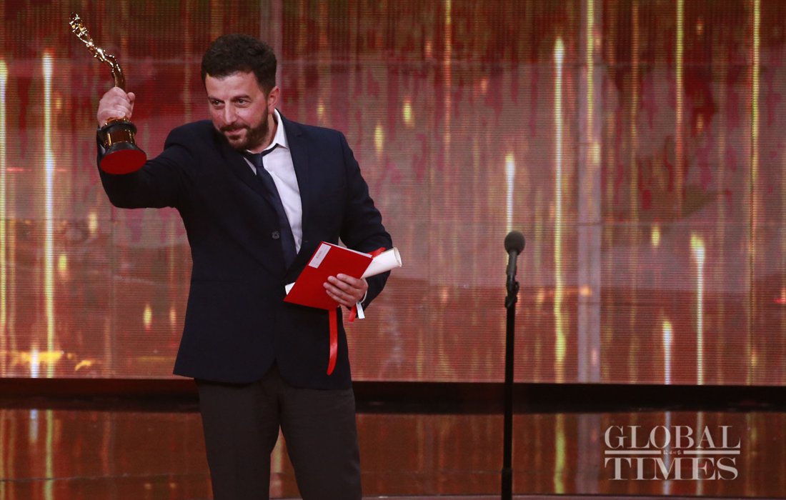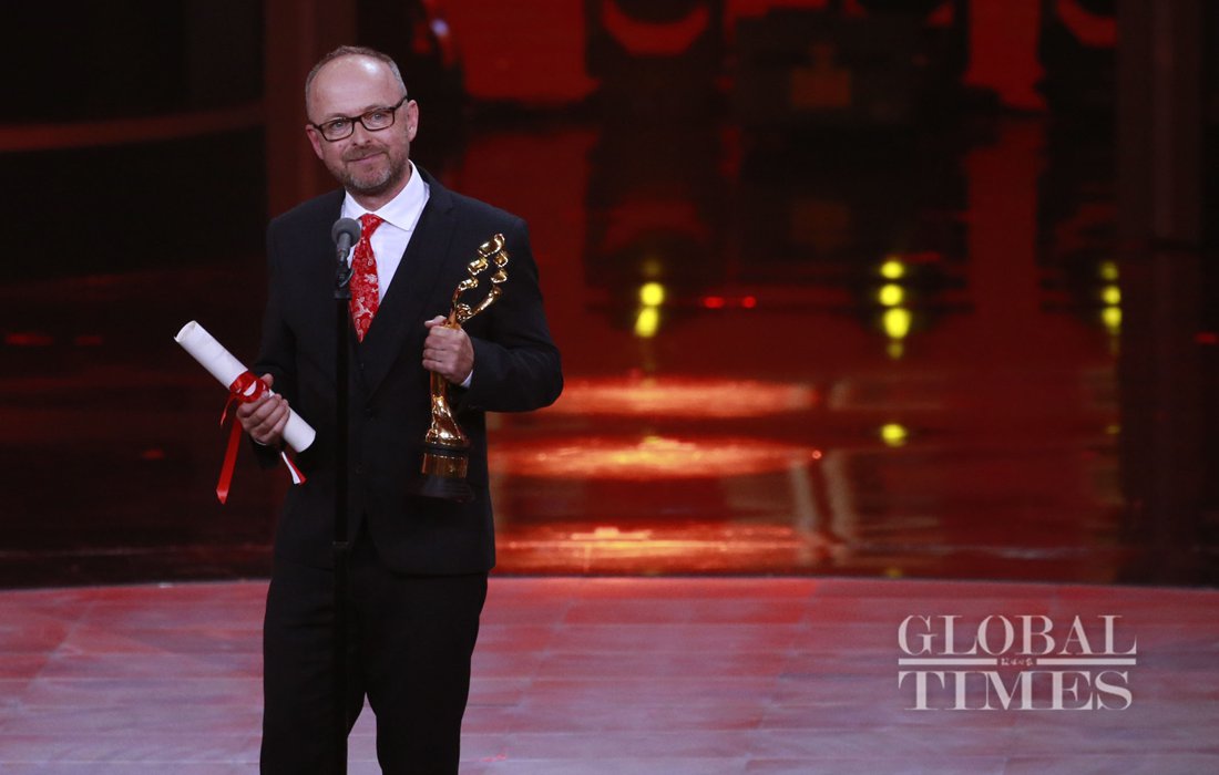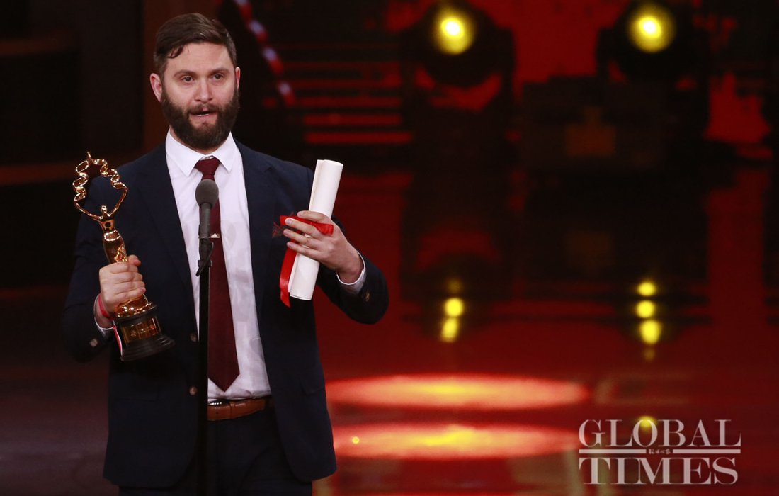 The Tiantan Awards jury line up on stage during the awards ceremony for the 8th Beijing International Film Festival. (Photo: Li Hao/GT)