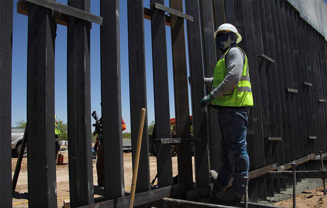 A construction worker observes the replacement of an old section of the border wall between Mexico and the US, following orders from US President Donald Trump, in Santa Teresa, New Mexico, USA, near Ciudad Juarez, Chihuahua, Mexico, on April 23, 2018. Photo: VCG figcaption >
