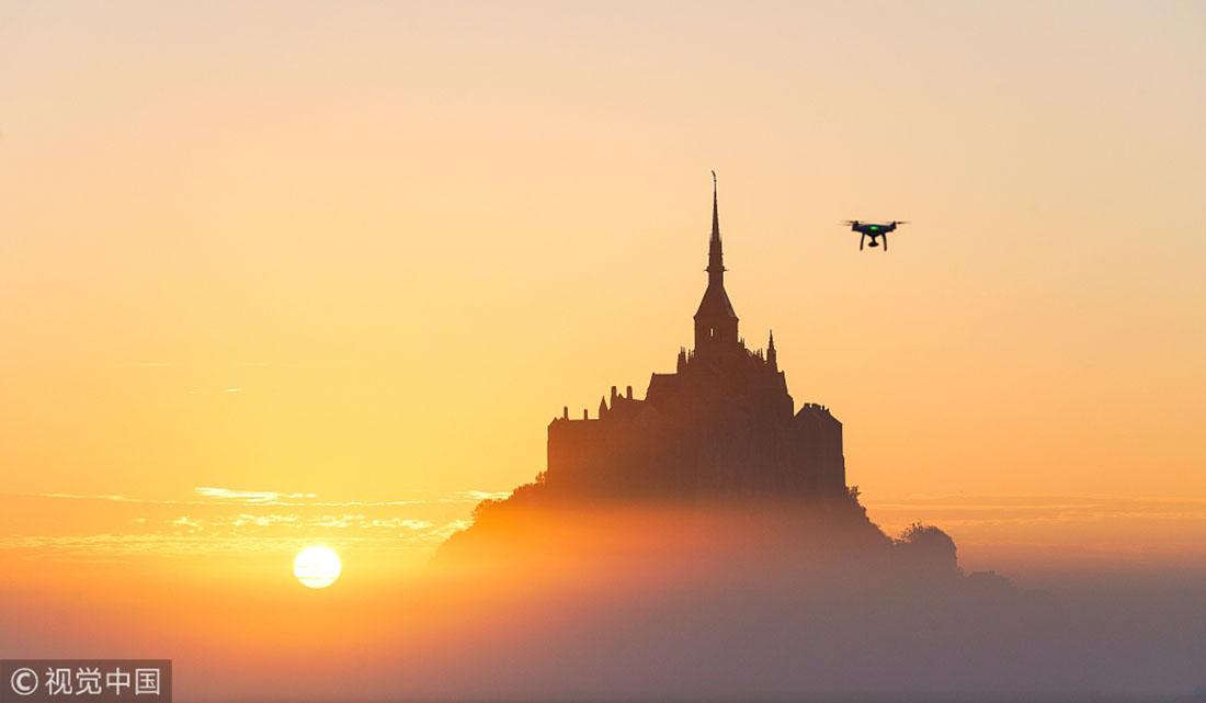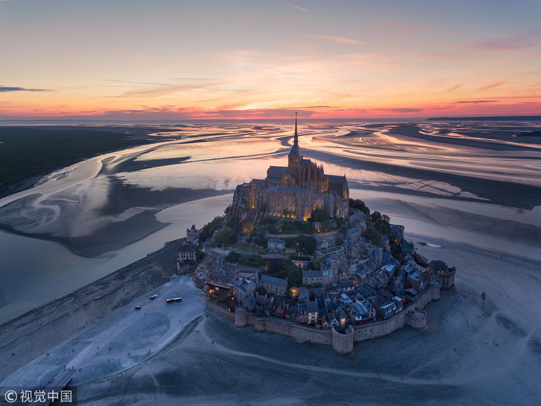 When the morning rays of dawn filter through the dark sky, the quiet abbey perched on the famed Mont Saint Michel is awakened. The abbey was built in the 8th century and is listed as one of the most famous historic buildings in France.