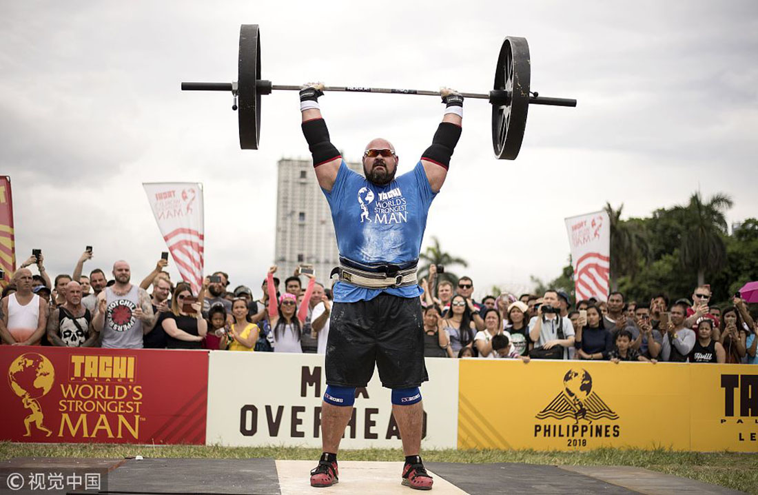 The 2018 World's Strongest Man competition was held in Manila from April 28 to May 6, 2018. Over 30 competitors around the world competed for the championship in 16 events, which include pulling a truck or an airplane, carrying a refrigerator, lifting an Atlas stone weighing over 1,000 pounds, and lifting huge logs. The title was taken by Game of Thrones actor Hafþór Júlíus Björnsson on May 6.