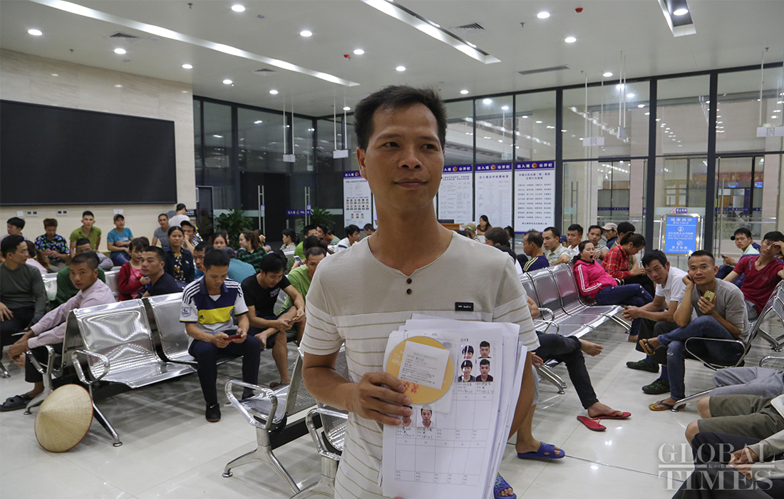 The growing border trade between China and Vietnam has enticed Vietnamese workers to work in Pingxiang, Guangxi Zhuang Autonomous Region, in the past few years. To crackdown on illegal workers, the Pingxiang government launched a border workforce cooperation scheme in 2017, and now receives about 500 Vietnamese workers on average every day to fill a variety of jobs in the border town. Due to cheaper labor costs, more and more Chinese companies in Pingxiang also prefer hiring Vietnamese workers. (Photos: Chen Qingqing/GT)