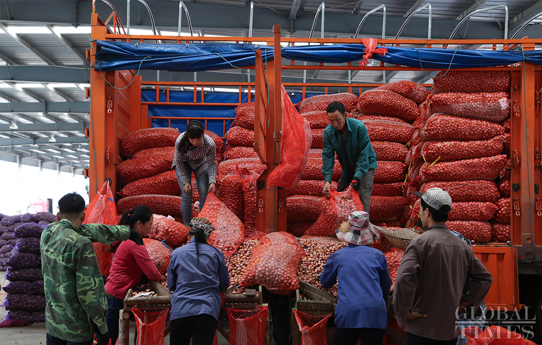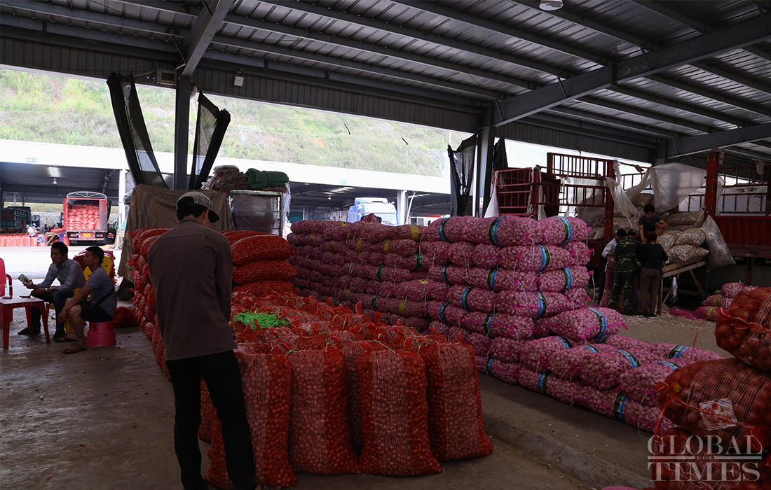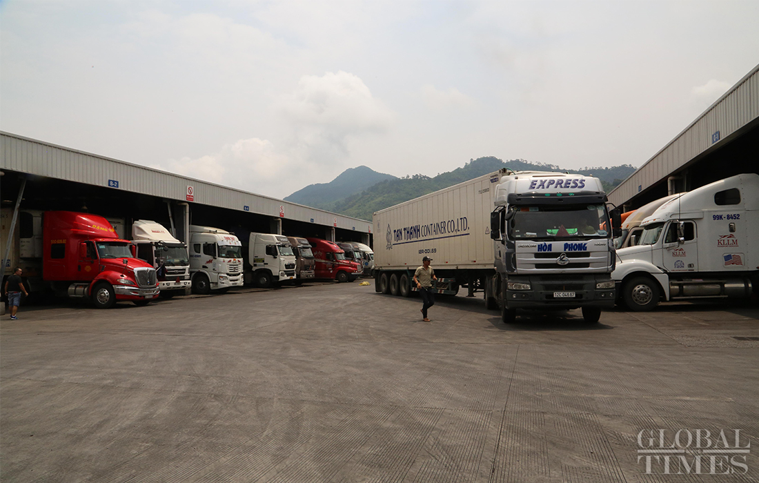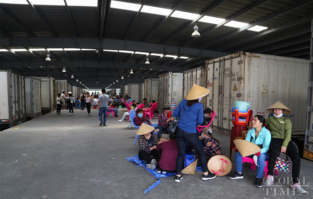 Vietnamese men and women work at an import and export inspection zone in Pingxiang, near the China-Vietnam border. Photo: Chen Qingqing/GT figcaption >