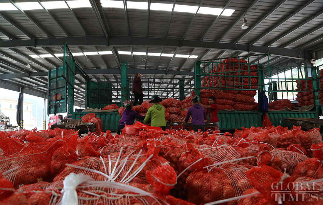 Vietnamese women work at an import and export inspection zone in Pingxiang, near the China-Vietnam border. Photo: Chen Qingqing/GT figcaption >