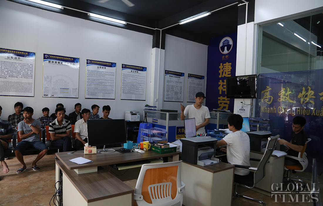 An employee helps Vietnamese workers go through the documentation. Photo: Chen Qingqing/GT figcaption >