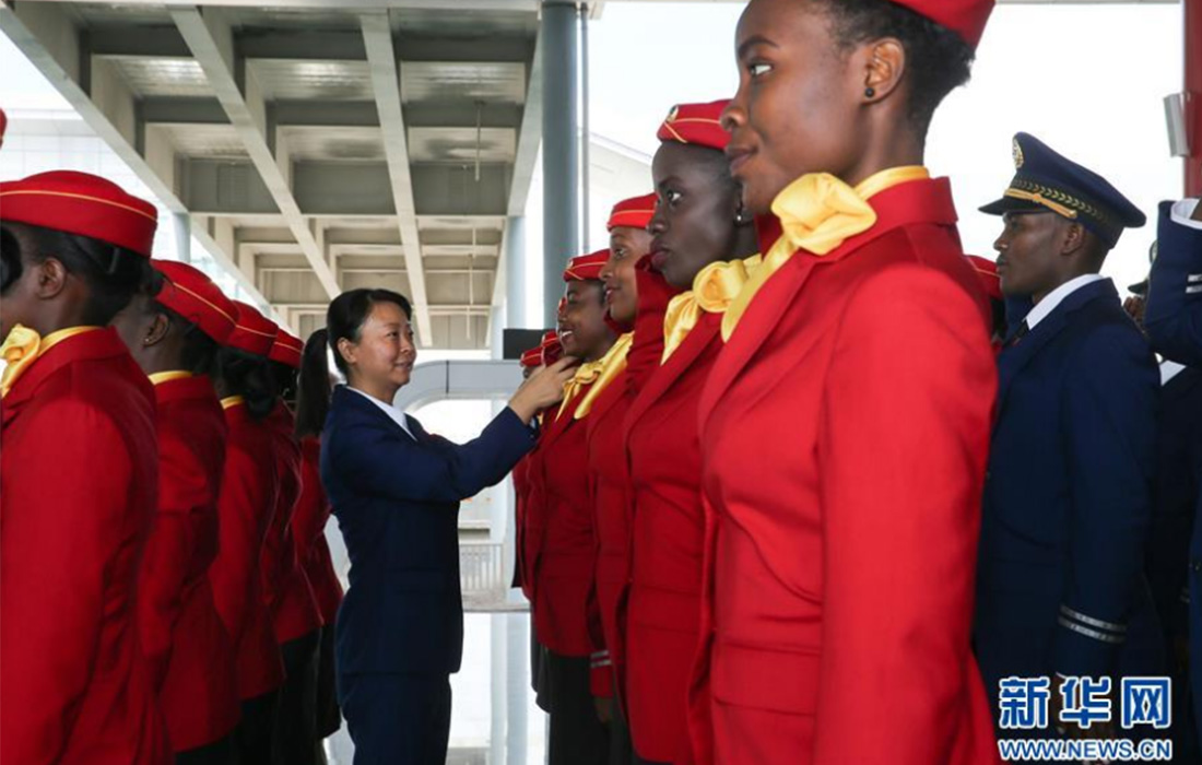 Huang Xiaoli, an administrator, inspects the conductors’ uniforms in the Nairobi South Station of the Mombasa-Nairobi Railway, Kenya, on May 16, 2017. Constructed by a Chinese enterprise, the Mombasa-Nairobi Railway connects the eastern port in Mombasa to Kenya’s capital city Nairobi in the west. It stretches about 480 kilometers and was opened to traffic on May 31, 2017. (Photo: Xinhua) figcaption >