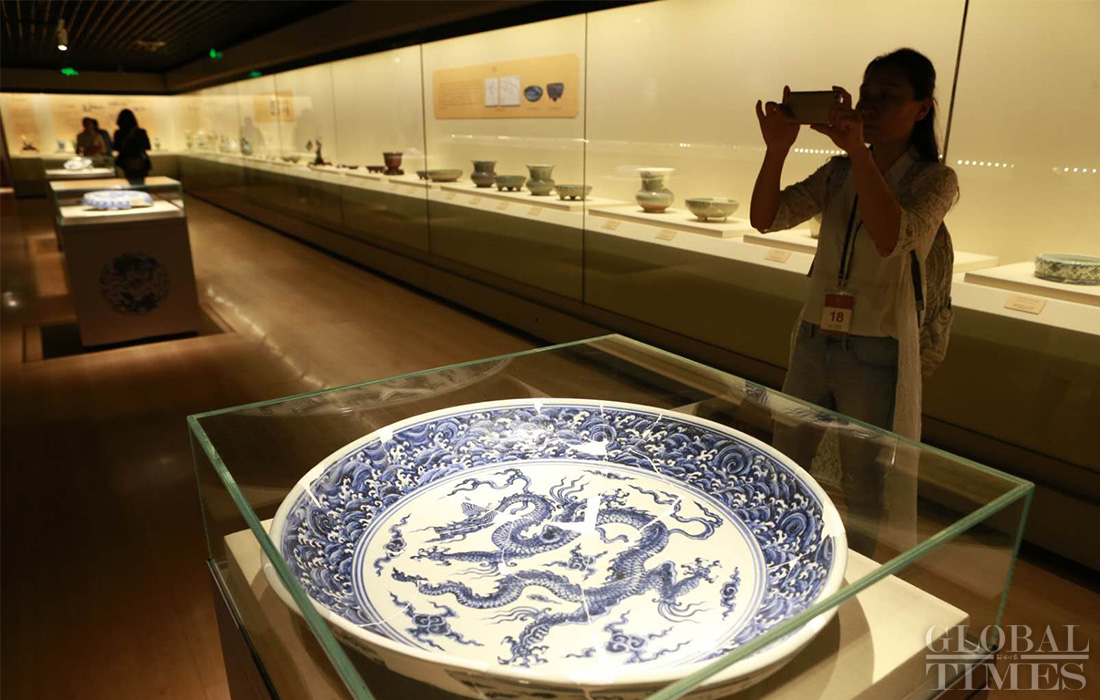 People admire the imperial Chinese ceramics made during the periods of the Zhengtong, Jingtai and Xuande emperors from the Ming Dynasty (1398-1457). Photo: Li Hao/GT figcaption >